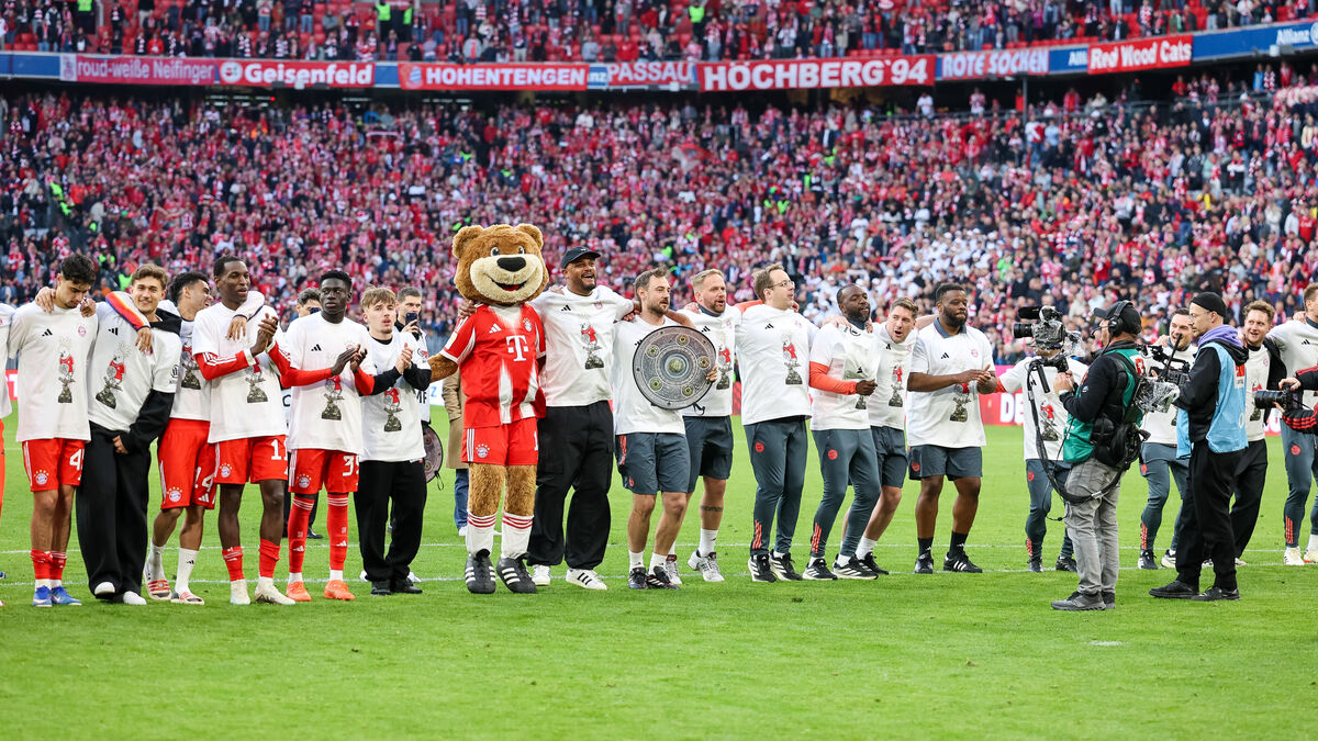 Bayern celebra 35.º título alemão no Allianz Arena, em MuniqueJenni Maul/picture-alliance/dpa/AP Images