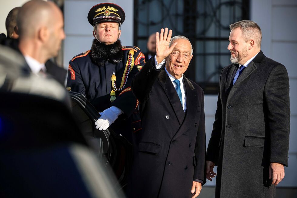 No exterior do palácio, Marcelo Rebelo de Sousa foi recebido pelo chefe de Estado da Eslováquia, Peter Pellegrini, e por um casal vestido com uma indumentária tradicional eslovaca que o aguardava para lhe oferecer pão e sal, um gesto simbólico de hospitalidade naquele país.