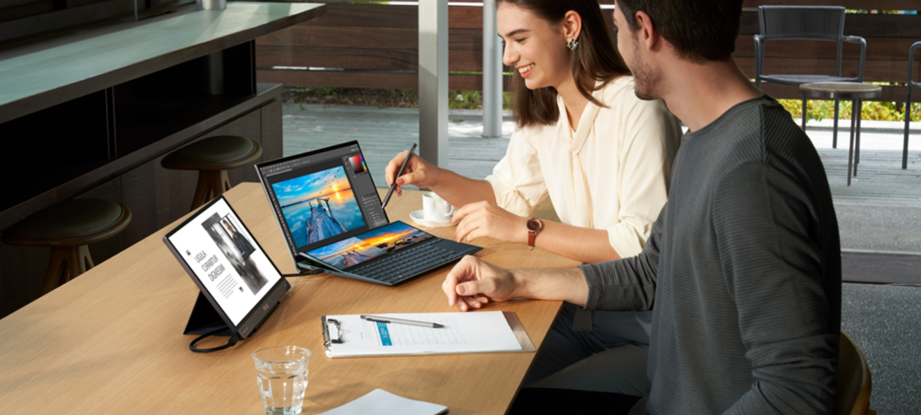 O ecrã secundário é na verdade um complemento essencial na mecânica de trabalho, dando uma nova dimensão à computação em movimento. A inclinação automática, bem como adaptação do brilho e dos reflexos, permite um processo mais rápido e intuitivo, com infinitas formas de otimizar e personalizar fluxos de trabalho. Tanto o ecrã principal como o secundário funcionam também com touchscreen e com a caneta Asus Pen, para trabalhos criativos e de design.