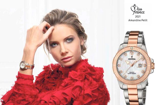 A marca levou, também, o estilo ao mercado feminino, demonstrando que uma imagem desportiva não é, de todo, incompatível com elegância. Cada vez mais presente neste segmento, a Festina tornou-se o relógio oficial da Miss France. Fortemente ligada ao mercado francês, o país escolhido não podia ser senão um ícone da moda e do design que simboliza tudo o que a marca representa.