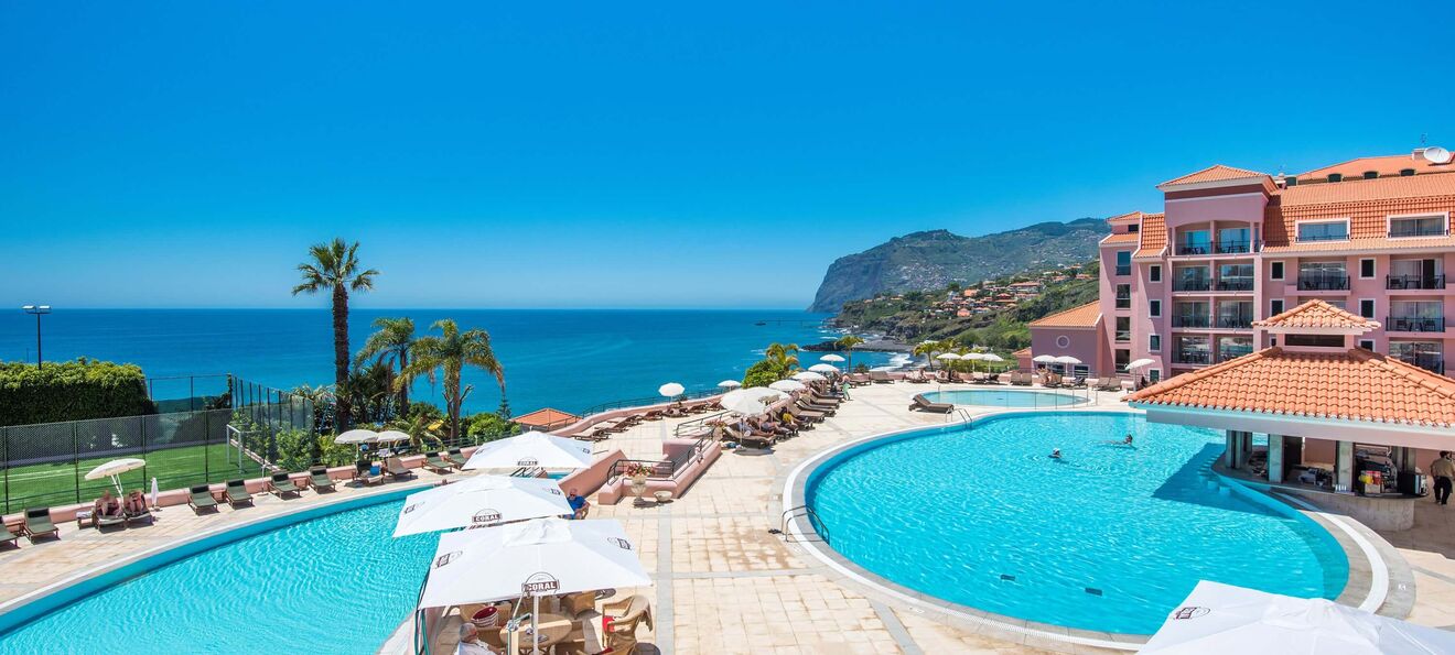 Bem perto da capital madeirense e a minutos do deslumbrante caminho pedestre à beira-mar que leva até Câmara de Lobos, o Pestana Royal está mesmo por cima da Praia Formosa, a que se acede com conforto por um elevador exclusivo do hotel. Aqui, a descontração é absoluta, entre as duas piscinas exteriores e a interior, aquecida, que pertence ao spa com três salas de tratamento e massagem. Todas as refeições e bebidas estão incluídas, para apreciar nos quatro restaurantes, nos dois bares e nas esplanadas. O Pestana Royal faz ponto de honra na tranquilidade oferecida. Para diversão urbana, o Funchal fica só a dez minutos de carro.