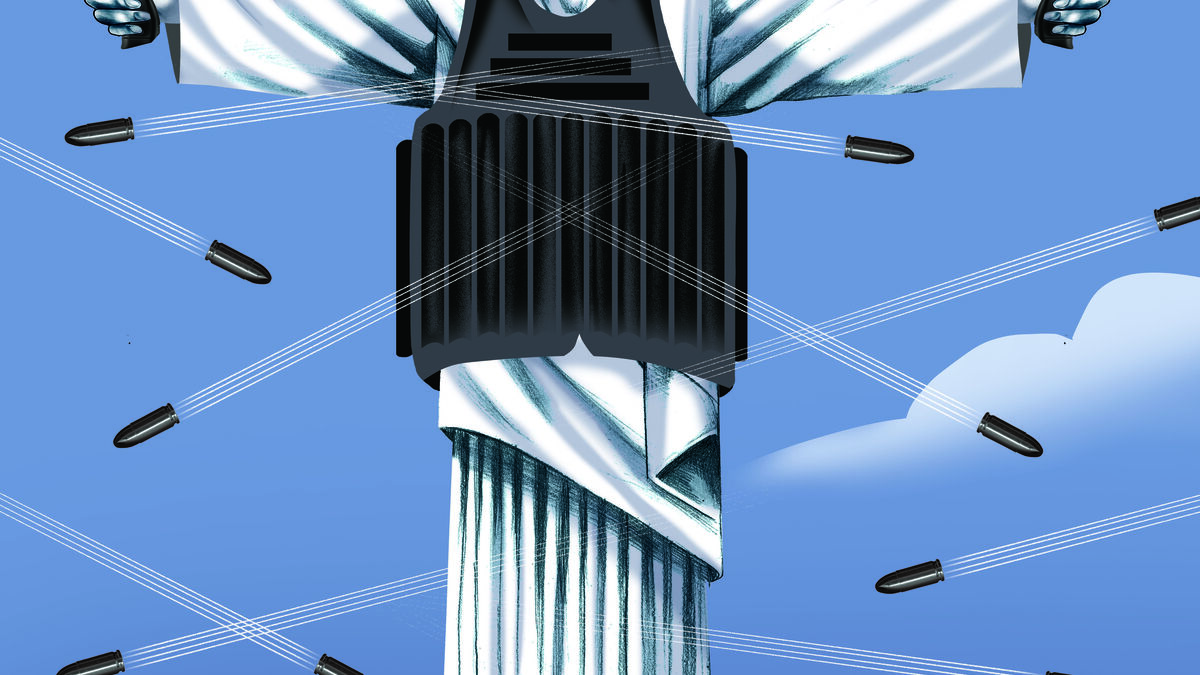 Cartoon de Vasco Gargalo retrata o Cristo Redentor com armas e colete à prova de bala