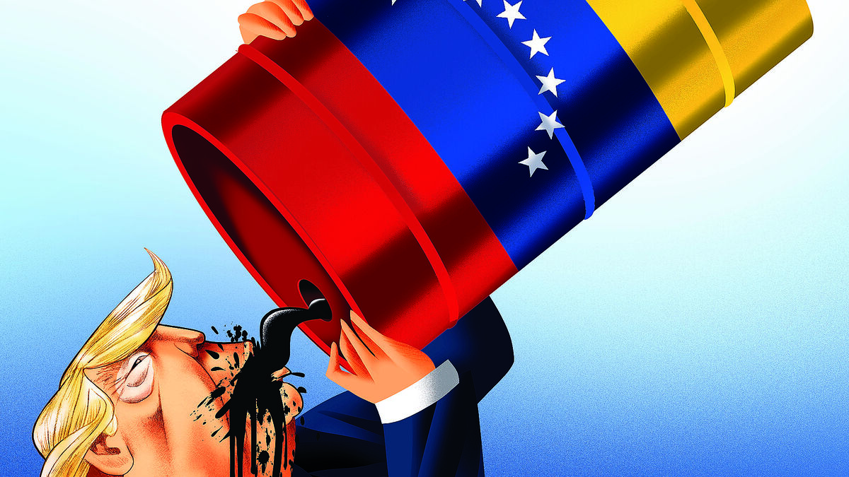 O cartoon mostra que Trump está interessado no petróleo da Venezuela