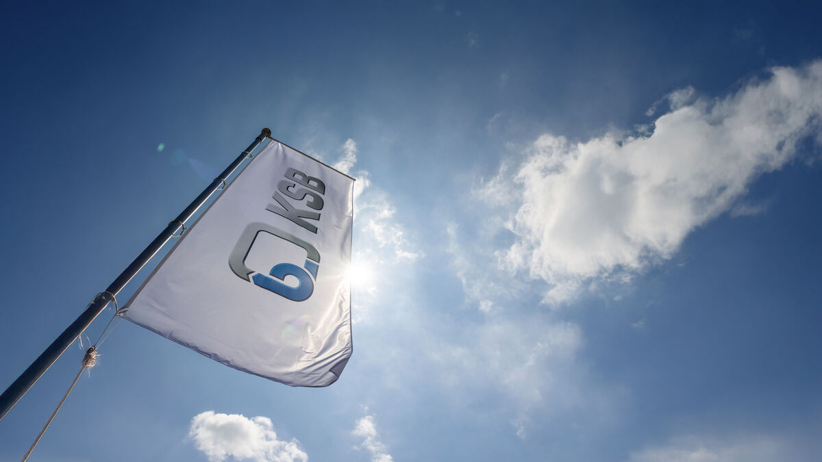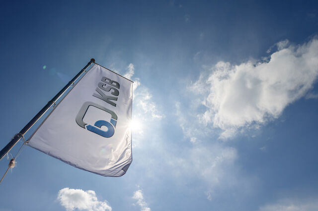 Bandeira da KSB ao vento, empresa de bombas e válvulas1