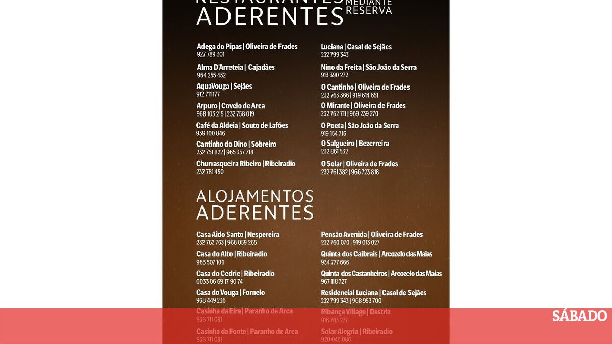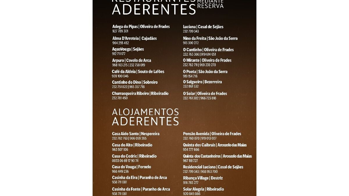 típico prato da cabidela, e de treze alojamentos locais, que disponibilizarão