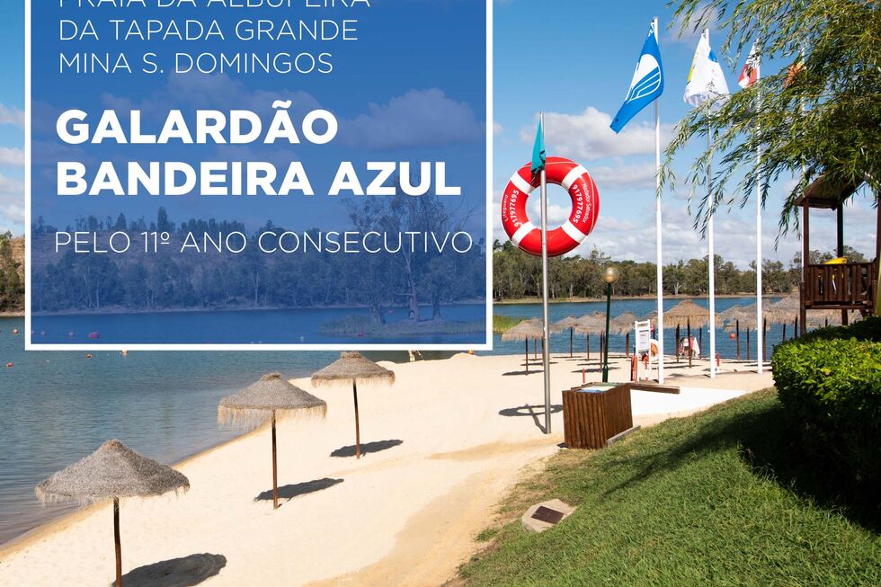 A Praia da Albufeira da Tapada Grande, na Mina de S. Domingos, recebe pelo 11º ano consecutivo a Bandeira Azul, o mais importante galardão de qualidade para uma Zona Balnear.