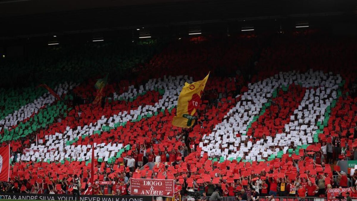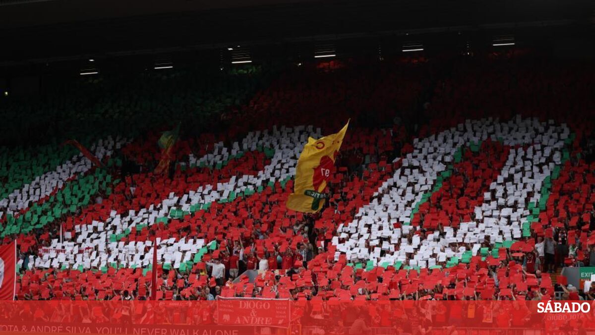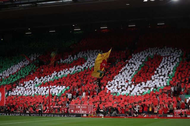 Adeptos do Liverpool homenageiam Diogo Jota e André Silva em Anfield