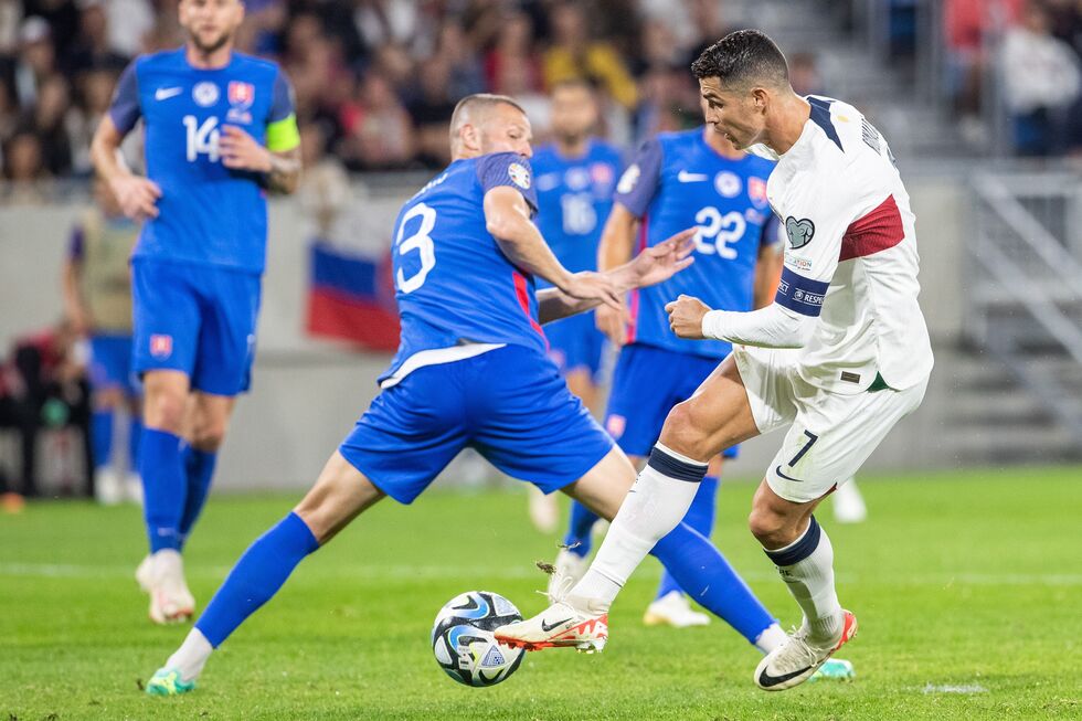 Se Rafael Leão passou ao lado do jogo de Portugal, Ronaldo também não fez melhor e, outra vez só com o guarda-redes pela frente, atirou para um 'encaixe' seguro, naquela que foi a última grande oportunidade do desafio.