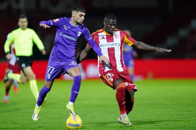 O jogador do AVS Ponk (D) em ação com o jogador do Sporting de Braga Gabri Martinez HUGO DELGADO/LUSA