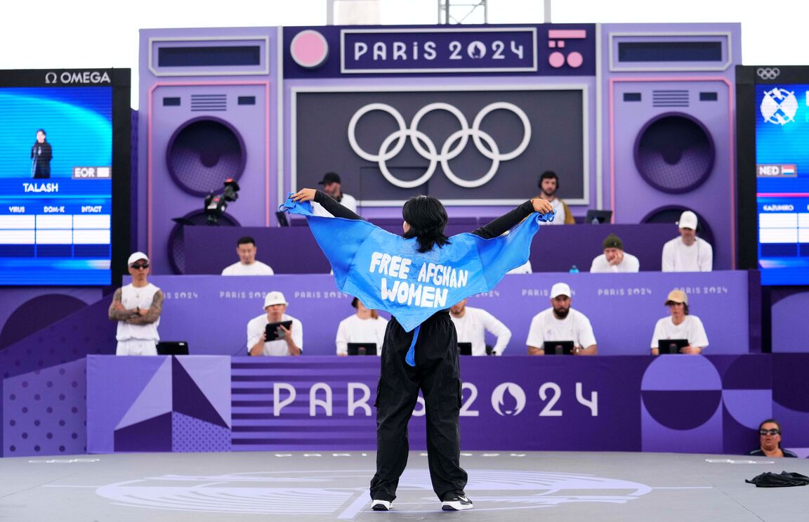 Atrás de Raygun, só ficou a atleta Manizha Talash, da equipa olímpica dos refugiados, que nasceu no Afeganistão antes de fugir por causa do regime talibã. Foi desqualificada por ter usado um casaco em que se lia "Libertem as mulheres afegãs".