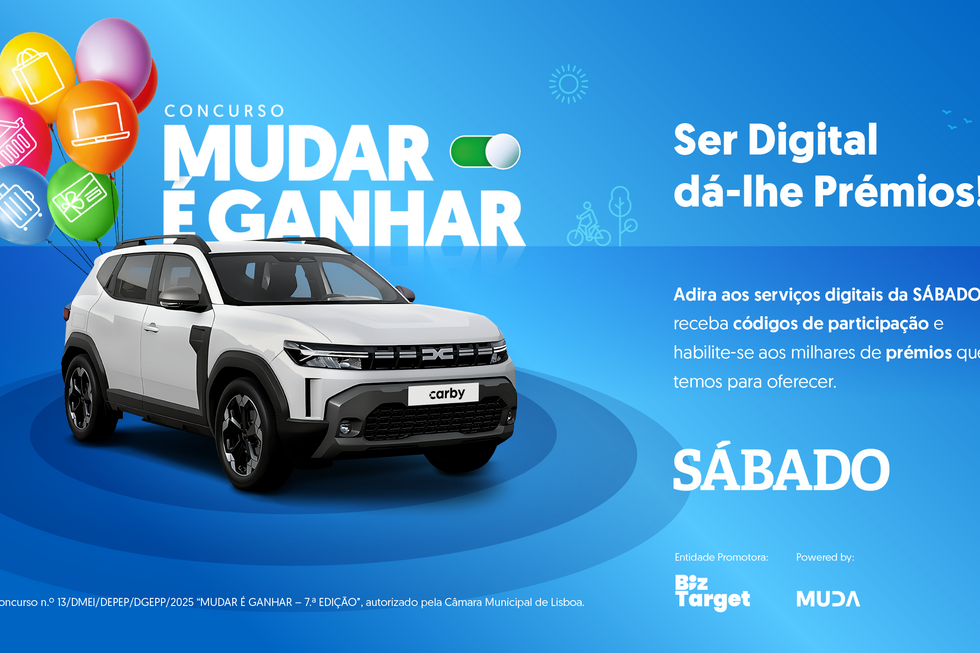 O Concurso Mudar é Ganhar já começou e até 31 de julho os leitores SÁBADO que aderirem aos nossos serviços digitais ficam habilitados a milhares de prémios.