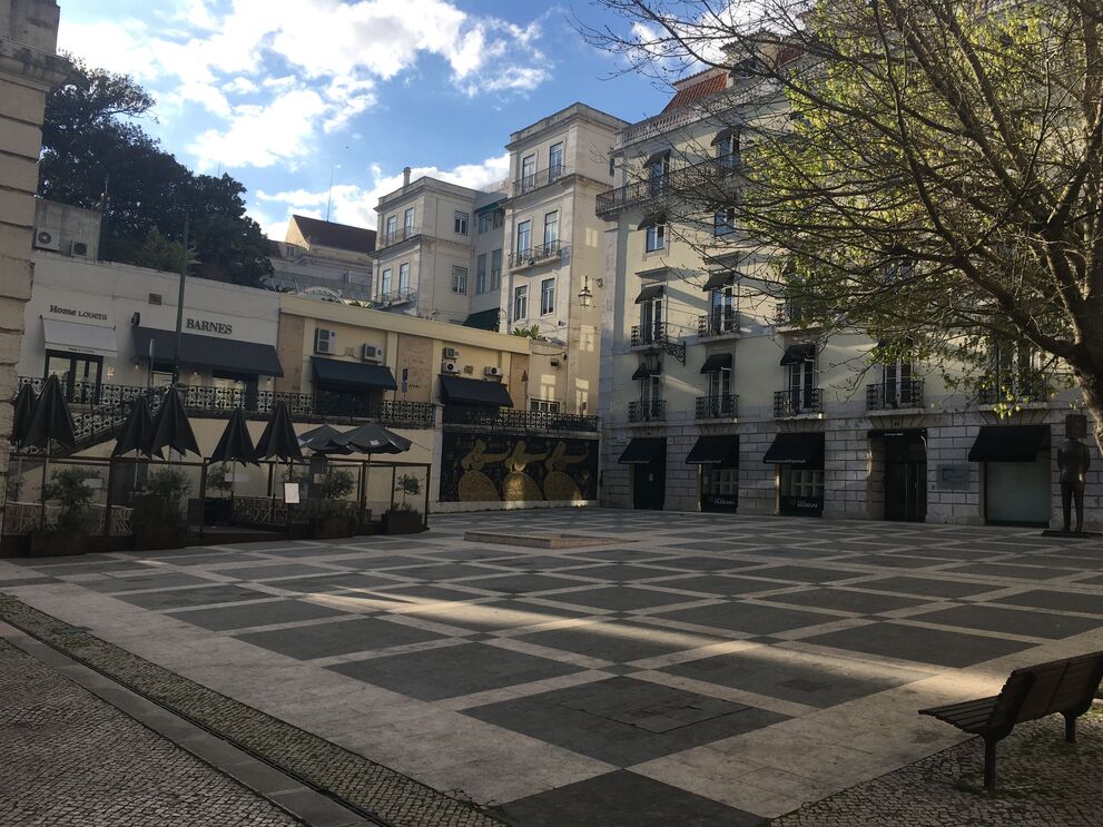 Nesta zona da capital, está aberta a farmácia. O resto está fechado e nas ruas, que costumam estar apinhadas, não se vê (quase) ninguém. Veja as imagens que mostram que os portugueses ficaram em casa devido à pandemia de coronavírus.