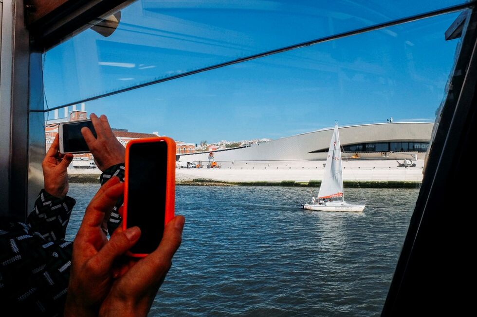 "Não temosvomidrineno barco por isso espero que corra tudo bem", diz Miguel Coutinho, administrador da EDP, antes de dar início à viagem que levaria a imprensa a conhecer oMAATa partir do rio Tejo. A volta durou cerca de trinta minutos e permitiu ver a conjugação do edifício novo com o antigo, a Central Tejo. O Museu de Arte, Arquitectura e Tecnologia inaugura a 5 de Outubro, quarta-feira, com uma programação que vai das 12h às 24h e é, nesse dia, de entrada livre.