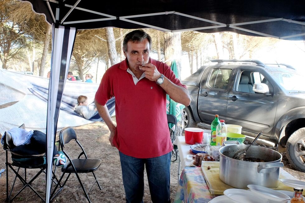 Uma falésia sobre a praia, punhos no ar que acompanham aGrândola, Vila Morenae uma tachada de caracóis. Era primeiro de Maio, mês que inaugura a época dos gastrópodes, e a praia do Trafal, em Loulé, enche-se de famílias que comem petiscos à beira-mar. Entre eles está Albano Lourenço, chef que tomou as rédeas do Vistas, restaurante doMonte Rei, em Vila Nova de Cacela, depois de ter passado peloArcadas(Quinta das Lágrimas, Coimbra - onde conquistou uma estrela Michelin em 2004, para a perder em 2012) e peloSão Gabriel(também com uma estrela e também no Algarve). O GPS foi experimentar a nova carta do Vistas e acabou a ser convidado para uma inesperada caracolada com os amigos do chef no dia seguinte. Está a tenda montada.