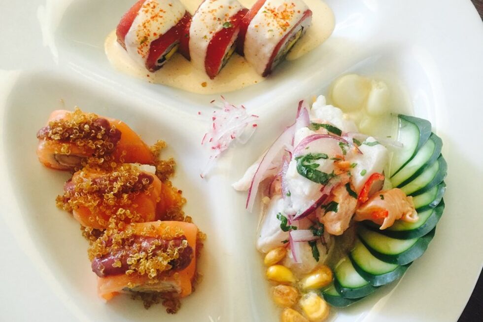 Se ficar na sala do piso inferior do restaurante prova sushi com fusão peruana