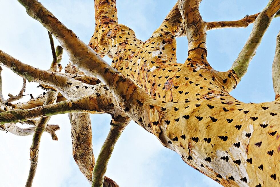 "Se nos pusermos ao lado do tronco e olharmos para cima, parece haver lágrimas a cair", começa por observar Sofia Barros, a propósito da esculturaRise and Fall, que está na Quinta do Pisão, Parque Natural de Sintra-Cascais, desde o início deste Verão.