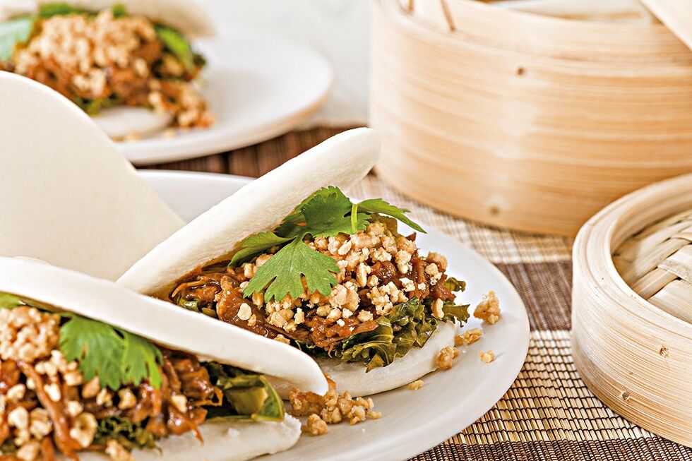 São pãezinhos asiáticos cozidos a vapor e podem ser recheados com mil e um sabores