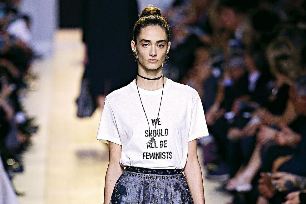 Em Setembro de 2016, Maria Grazia Chiuri tornou-se a primeira mulher a assumir a direcção criativa da Dior. Sem fugir aos códigos damaison, deu uma voz sonante à expressão feminina e celebrou a moda como motor da quebra de convenções. Na sua primeira colecção, a Primavera/Verão 2017, destaca-se umaT-shirt, onde se lê em letras pretas sobre brancoWe Should All Be Feminists.