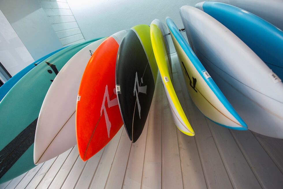 A Base Surf Caffe disponibiliza pranchas e acessórios para surfistas, mas também tem artigos para os praticantes de surf