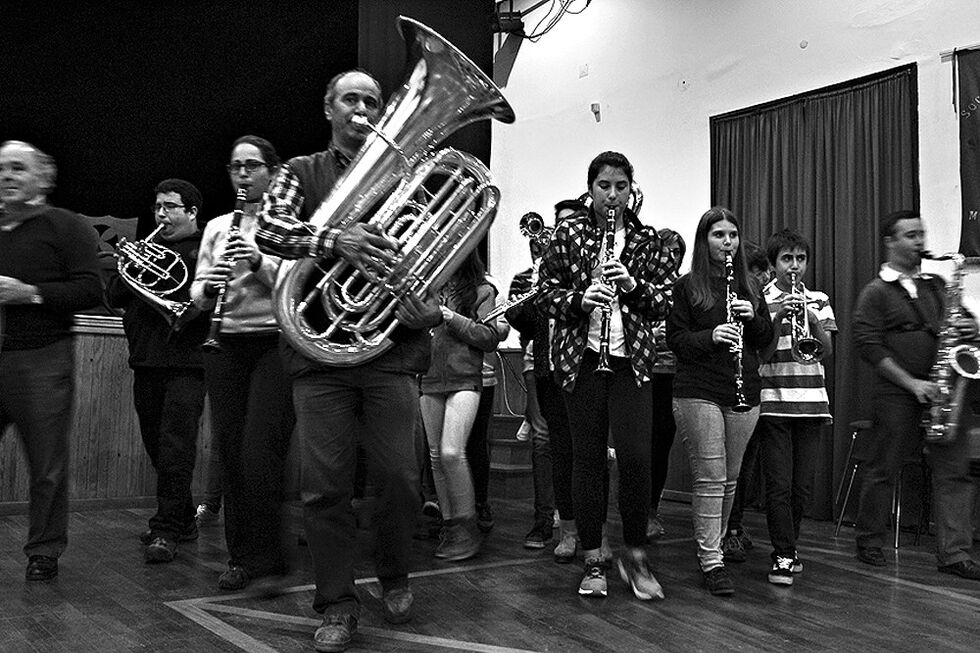 Os músicos da Sociedade Filarmónica Euterpe Meiaviense formam o elenco da nova criação da coreógrafa Vera Mantero, que estreia este sábado, 16 de Janeiro, no Teatro Virgínia.