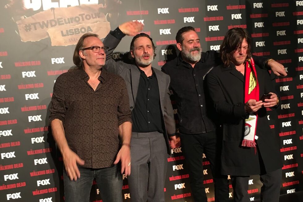 O dia (quarta-feira, 8 de Março) começou cedo na Avenida da Liberdade. Pelas 8h da manhã já os fãs de The Walking Dead estavam nas ruas para garantir um lugar no Teatro Tivoli BBVA, em Lisboa, onde Andrew Lincon (Rick), Norman Reedus (Daryl), Jeffrey Dean Morgan (Negan) e o realizador Greg Nicotero marcaram presença.