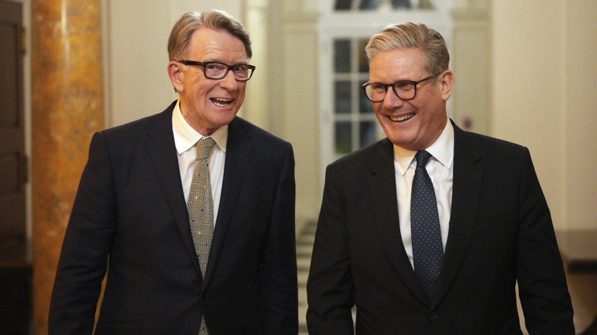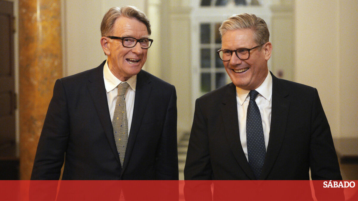 O embaixador do Reino Unido em Washington Peter Mandelson acompanhado de Keir Starmer. Mandelson está envolvido numa polémica dada a sua ligação a Jeffrey EpsteinAP