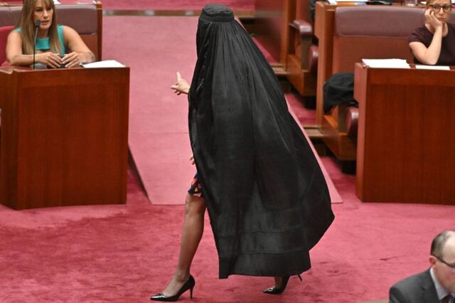 Pauline Hanson, de 71 anos, líder do partido minoritário anti-muçulmano e anti-imigração, One Nation, foi acusada de ter feito uma demonstração desrespeitosa na segunda-feira depois de ter entrado no Senado vestida com uma burca.