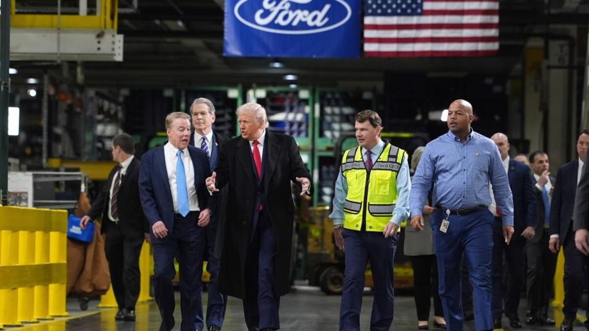 Donald Trump na visita à fábrica da Ford