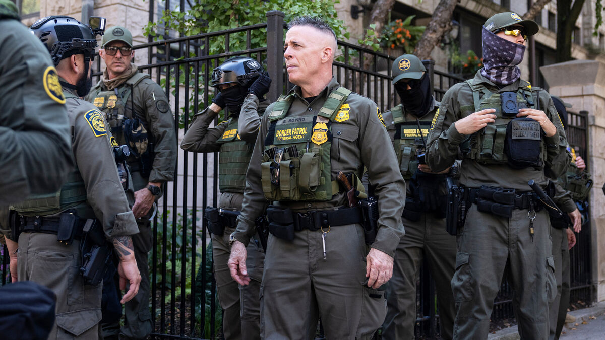 Agentes da Patrulha de Fronteira dos EUA aguardam por ordemAshlee Rezin/Chicago Sun-Times via AP