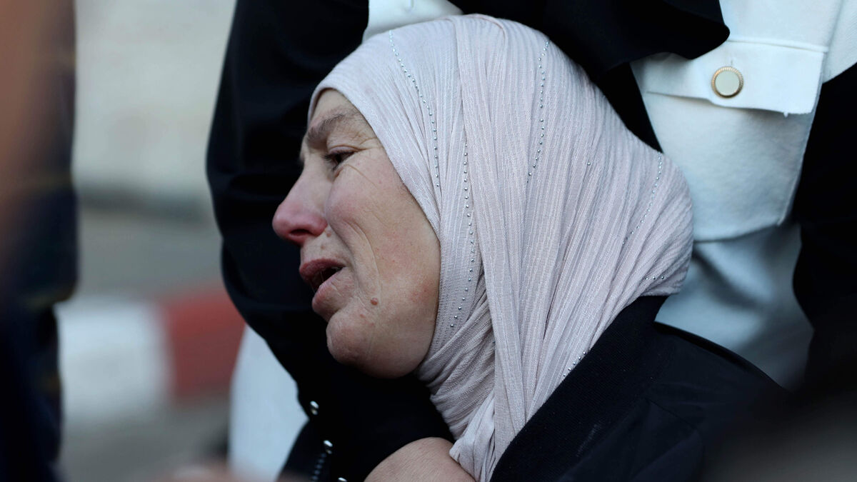 Mãe de um dos palestinianos mortos, chora durante o funeral.Ayman Nobani/AP
