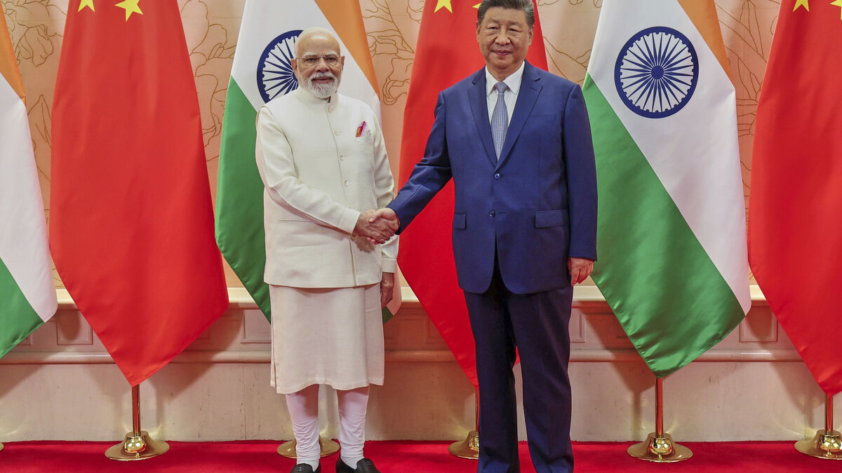 Xi Jinping e Narendra Modi juntos na retoma de voos China-ÍndiaIndian Prime Minister's Office via AP