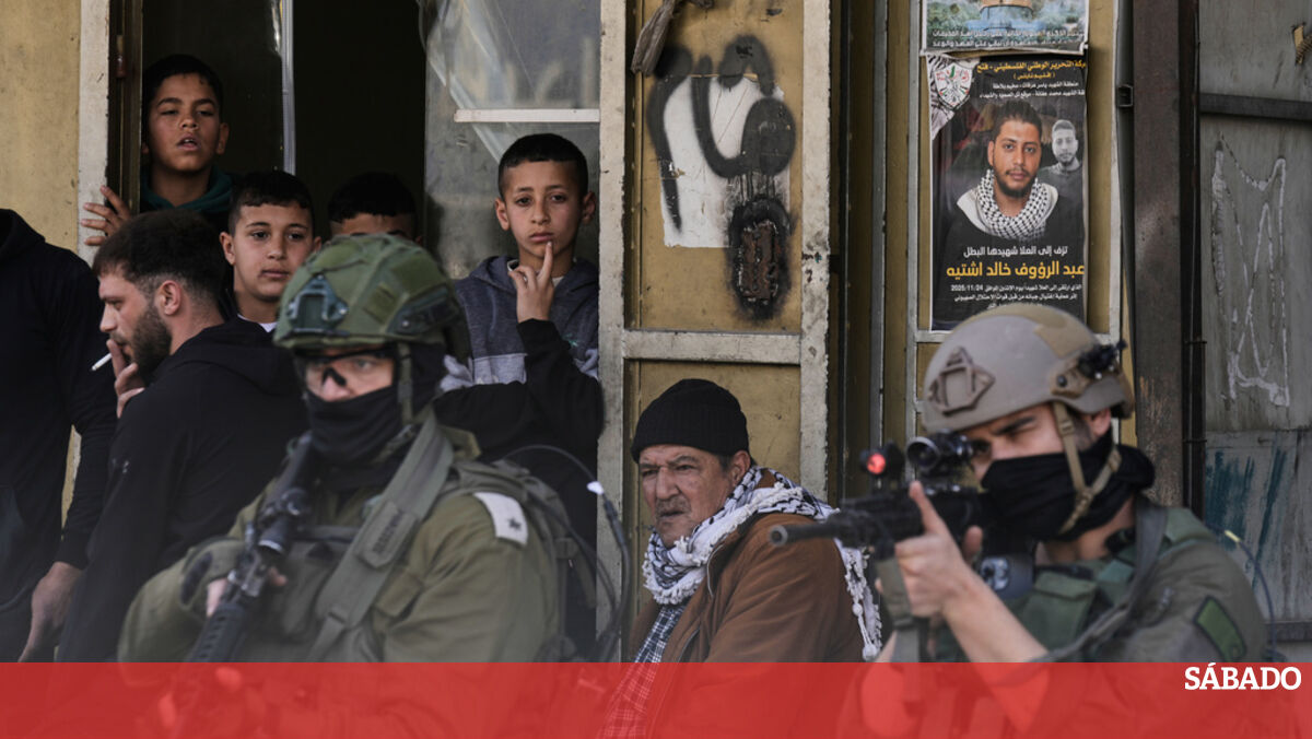 Soldados israelitas durante uma operação no campo de refugiados Balata na Cisjordânia ocupadaAP