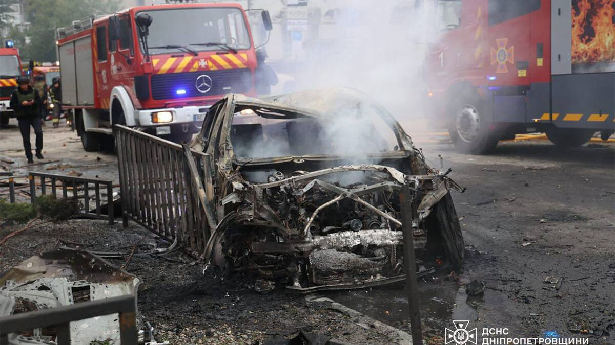 Carro destruído após ataques; apelo de Zelensky à EuropaUkrainian Emergency Service via AP