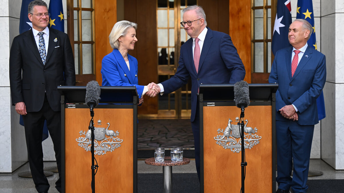 Ursula von der Leyen e o primeior-ministro da Austrália, Anthony Albanese AP