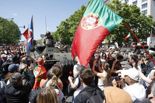 Algumas horas depois das cerimónias oficiais na Assembleia da República, o desfile em Lisboa arrancou pelas 15:30, liderado pelas tradicionais Chaimite, as icónicas viaturas blindadas usadas em 1974 na Revolução dos Cravos e um portador de um cartaz alusivo aos presos políticos libertados há 52 anos.