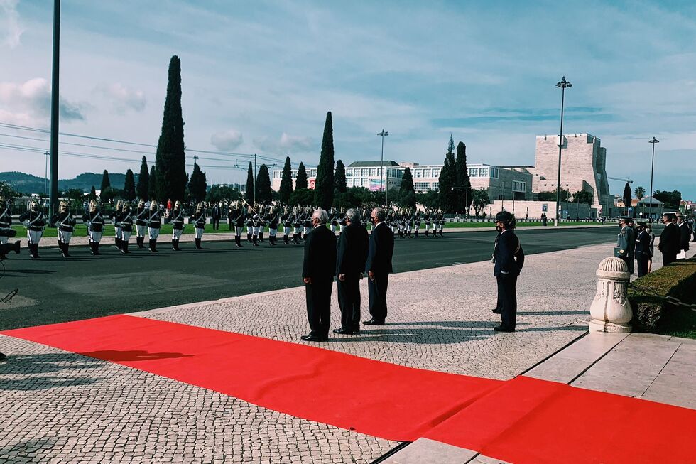 Marcelo Rebelo de Sousa, António Costa e Ferro Rodrigues perfilaram-se junto aos Jerónimos enquanto se ouvia o Hino Nacional.