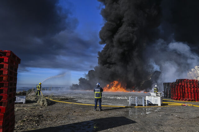 Cerca de dez pessoas terão de abandonar as suas casas na sequência do incêndio que deflagrou hoje num armazém de fruta, em Óbidos, no qual dois bombeiros ficaram feridos sem gravidade, segundo as autoridades.