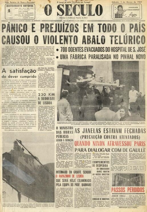 O sismo sentido na madrugada desta segunda-feira, 26 de agosto, foi o mais intenso desde o de 28 de fevereiro de 1969. O tremor de terra de magnitude 7.9 na escala de Richter - o desta madrugada registou 5.3 na mesma escala - teve epicentro a 230 quilómetros a sudoeste de Lisboa e causou fortes danos no Algarve.
