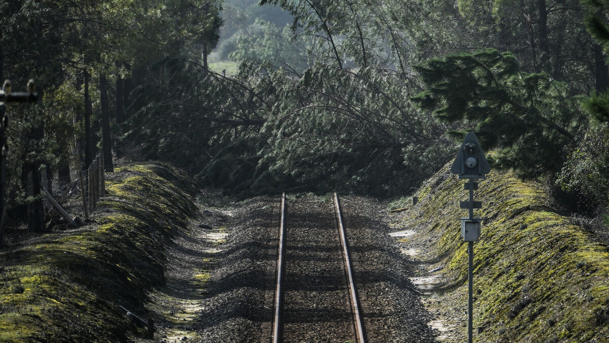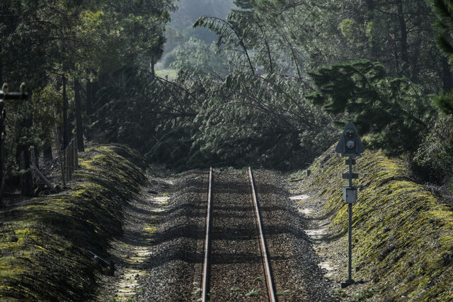 Queda de árvores na linha do Oeste, na zona de Pataias Gare, depois da passagem da depressão KristinCarlos Barroso/LUSA_EPA