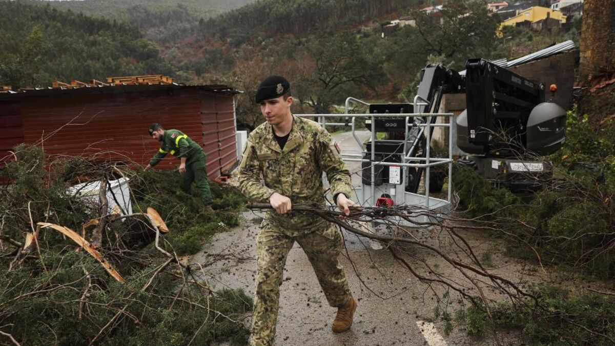 Militares auxiliam na limpeza após mau tempo na Figueira da FozESTELA SILVA/LUSA