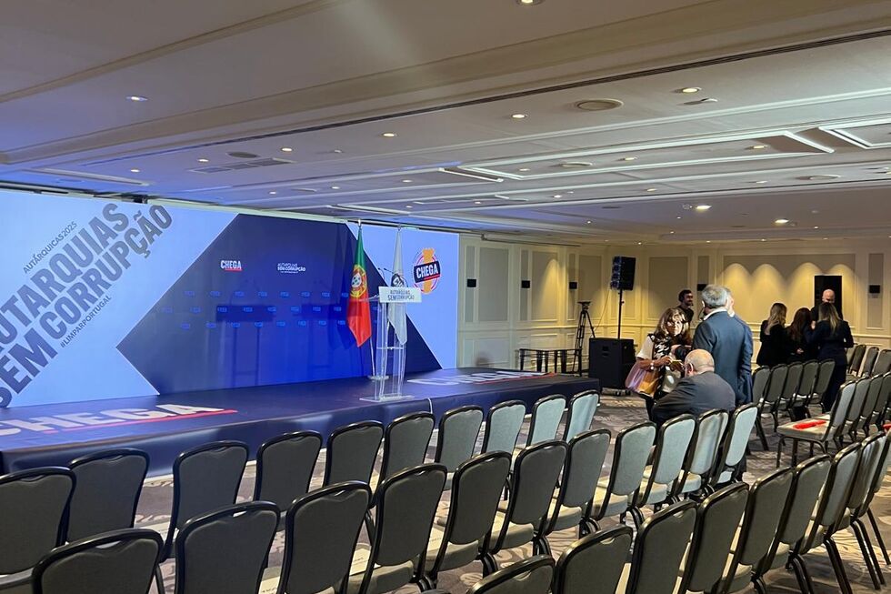 Como dita a tradição dos últimos anos, a Chega vai acompanhar a noite eleitoral no Hotel Marriott, em Lisboa. A sala de conferências Nova Iorque ainda está vazia, mas espera-se uma concentração de militantes e dirigentes, de autarcas a candidatos, de Norte a Sul do País, o esperado de um partido que pretende centralizar a imagem em torno de André Ventura e no número de autarquias que conquistará. Grande parte dos militantes está a jantar, de telemóvel na mão, a comentar as sondagens (algumas delas falsas) que correm no WhatsApp. Para já, não há sinal de qualquer elemento do núcleo duro do partido. Se for como outros anos, a direção estará uns pisos acima, numa sala reservada, onde jantará e acompanhará a noite.