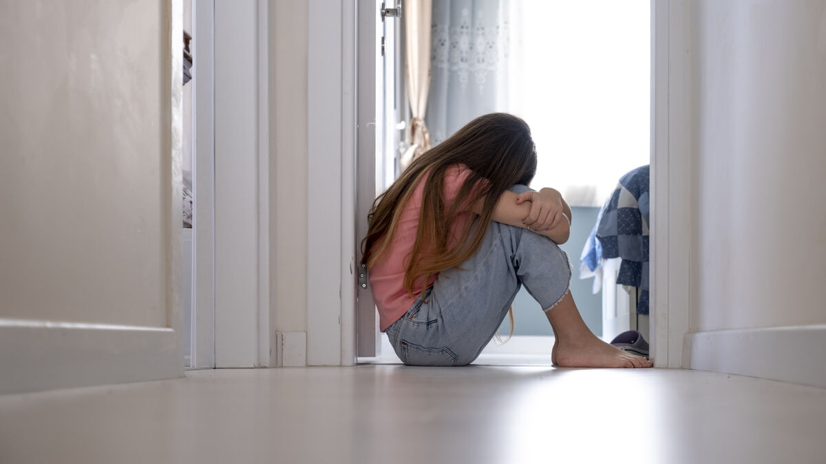 Mulher sentada no chão, vítima de violênciauchar/iStockphoto