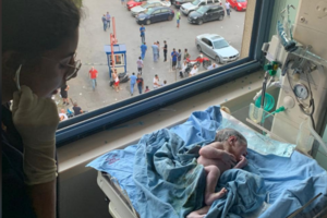 O parto foi feito com a ajuda de lanternas. Mal a mãe entrou na sala de partos, deu-se o estrondo. No hospital, morreram quatro enfermeiras.