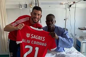Jogador das Águias ofereceu uma camisola do clube, personalizada com o número 21.