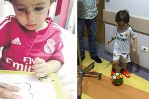 Haidar tem três anos e perdeu os pais no atentado no Líbano. Na altura, vestia uma camisola do craque português
