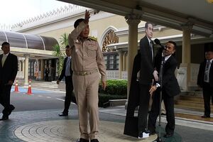 O chefe de governo da Tailândia desafiou os jornalistas a dirigirem as suas perguntas a um retrato seu em tamanho real