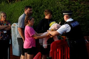 Mais de cem manifestantes gritavam "salvem as nossas crianças" e "mandem-nos para casa" enquanto agitavam bandeiras britânicas em frente ao hotel ao início da noite de domingo.