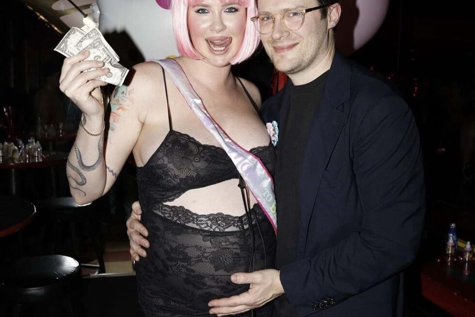 Ireland, filha de Kim Basinger e Alec Baldwin, vai ser mãe pela primeira vez e quis celebrar em lingerie, entre pole dance, hambúrgueres e notas de dólar.