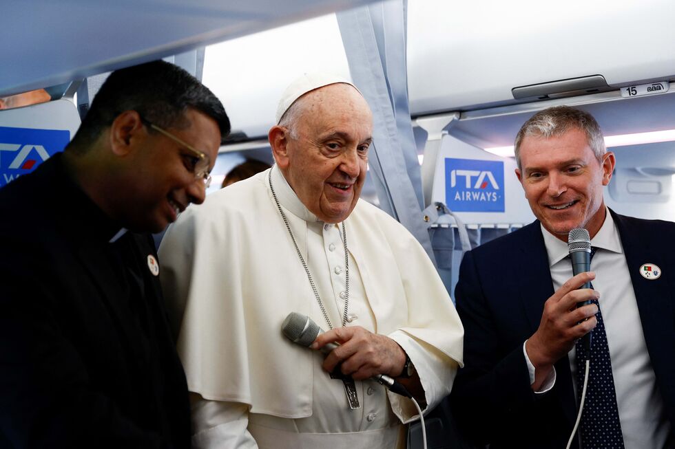 "Muito obrigado pela vossa companhia e pelo vosso trabalho e vou cumprimentar-vos um a um. Obrigado", disse Francisco, momento antes de iniciar os cumprimentos aos 78 jornalistas, incluindo 11 portugueses, que estavam a bordo do avião da ITA Airways, que partiu do Aeroporto Internacional de Fiumicino, Roma, pelas 08:00 locais (menos uma hora em Lisboa).