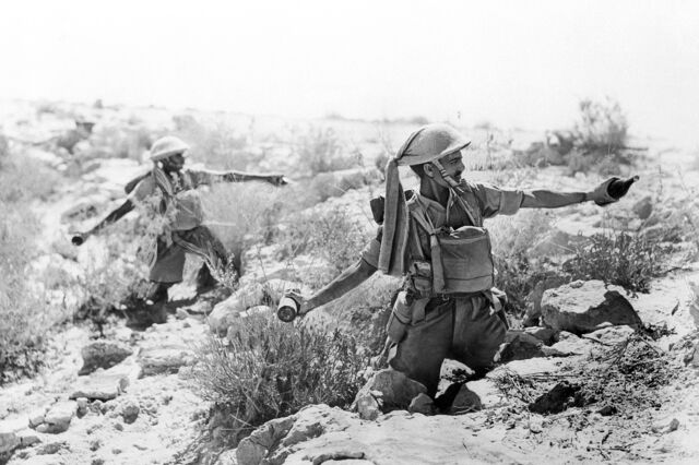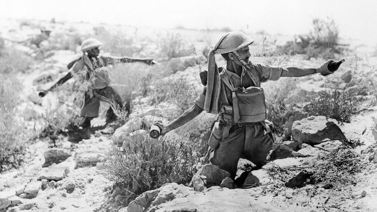 Dois soldados anglo-indianos lançam cocktails Molotov a 12 de dezembro de 1940Foto AP